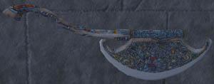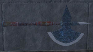 Enfin, une quête particulière, parfois donnée par des Guides (pas toute l'année), permet d'obtenir des recettes d'armes décoratives. Pour rappel, les Guides sont des joueurs bénévoles proposant des quêtes et de l'animation role play sur les serveurs. Ils signalent parfois leurs quêtes à l'avance sur le forum officiel, section française, roleplay et événements. La quête "Fou de Haches" demande d'aller examiner des haches à l'entrée de Kaladim et dans les forts d'Est et Ouest Pas de Fer.