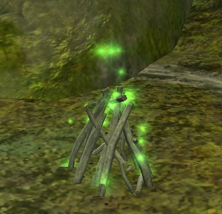 Pick up twigs on the right as you leave the hut (13, 5, 380 ).